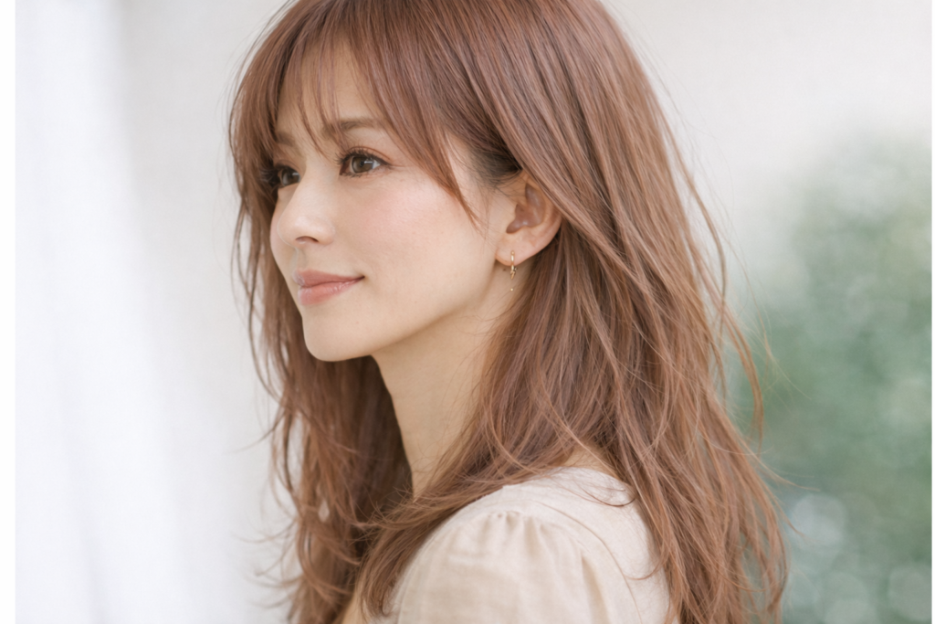 今回ご紹介するのは、冬~春にかけて大人気のピンクベージュカラー×レイヤーロングスタイルです。